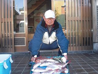 あきる野市の長谷部さん 日和に恵まれ お正月用鯛確保!! お刺身サイズ入ってッ抜け・・・ バラシもあった。 |