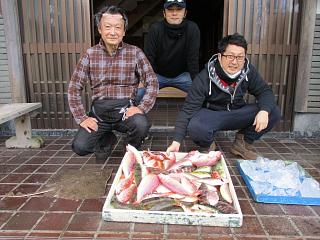 文京区の小川さんご一行 穏やかな海・・・ 寒空の中で健闘 大漁で〜す!! |