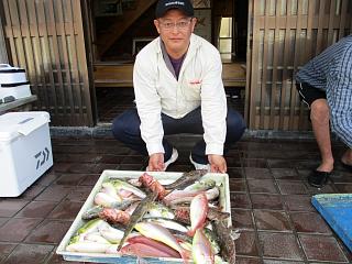 横浜市の甲斐さんご一行 本命喰い渋るも良型外道多彩で 終日楽しみました。 |